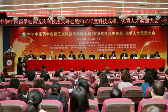 12月10日,由中华中医药学会主办,广东药学院、广东省代谢病中西医结合研究中心、《中华中医药杂志》社和中华中医药学会科技评审部共同承办的中华中医药学会第五次科技成果峰会暨2015年度科技成果、优秀人才奖励大会在广东药学院大学城校区隆重举行。国家中医药管理局副局长、中华中医药学会副会长马建中,国家科学技术奖励工作办公室主任邹大挺,广东省人民政府副秘书长李贻伟,中国工程院院士陈香美,国家中医药管理局科技司司长曹洪欣,国家科技部基础司原司长张先恩,广东省卫生和计划生育委员会副主任黄飞,广东省中医药局局长徐庆锋,广东药学院党委书记杨海涛、校长郭姣,广州市科技创新委员会副巡视员郑伟光,中华中医药学会副会长、广东省中医院院长陈达灿,10余所中医药高校负责人,10余位国家科学技术奖获得者以及国家中医药管理局、广东省科技厅、广东省教育厅、广东省中医药局相关处室负责人等领导、专家、代表500余人出席会议。峰会由中华中医药学会副会长兼秘书长曹正逵主持。