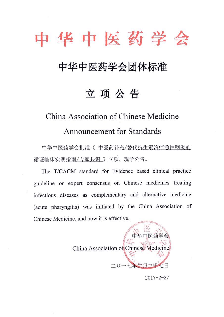 《中华中医药学会团体标准立项公告》