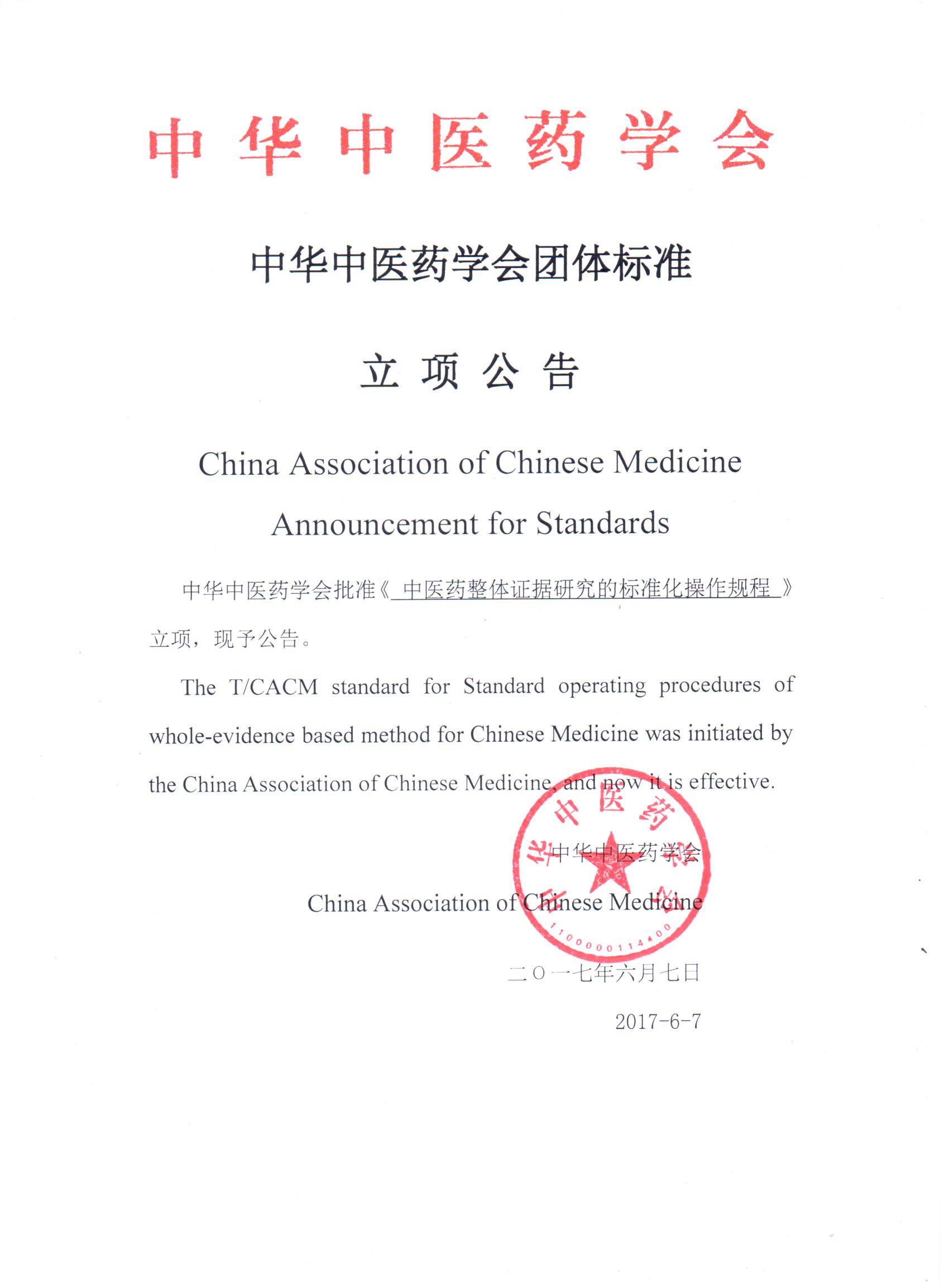 《中医药整体证据研究的标准化操作规程》等4项团体标准立项公告