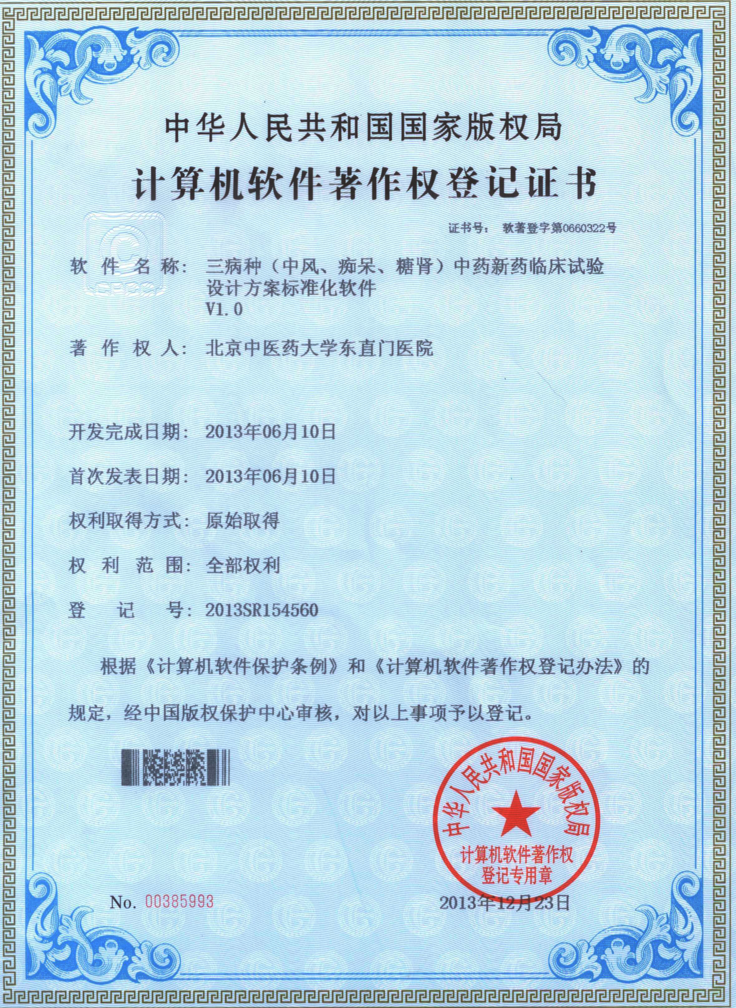 该成果获软件著作权4项、作品著作权6项、指南4部、专著4部、教材2部、技术转让3项、论文39篇,其中SCI收录论文18,单篇最高影响因子17.472。故事延迟回忆被国外专家推荐用于痴呆检测和诊断痴呆诊断、分层、结局评价技术参数及标准化流程被国内专家和国家药审中心(CDE推荐应用;中药新药治疗痴呆临床研究指导原则被CDE推荐为国家指南;简短认知测试、血管性认知损害诊断、记忆筛查等指南等被中国阿尔次海病协会(ADC)推荐为团体指南痴呆临床分期辨证方案被写“十三五”国家规划教材,开启痴呆分期辨证新篇章。多个研究方案、设计软件、管理制度和技术规程被7项中药治疗痴呆临床试验15个中药新药86项中药再评价以及北京、上海、澳门等18省市区70个临床试验机构应用