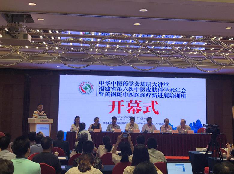 2018年中华中医药学会基层大讲堂暨福建省第六次中医皮肤科学术年会、黄褐斑中西医诊疗新进展培训班于2018年7月27日至29日在福建省宁德市金海湾大酒店隆重召开。本次学术会议由中华中医药学会皮肤科分会、福建省中医药学会及福建中医药大学附属第二人民医院联合举办,邀请了国内著名中医、中西医结合皮肤科、皮肤美容专家,针对皮肤科常见病及疑难病的中医、中西药结合诊疗作了专题讲座。本次参会人数120余人,其中包括部分西医皮肤科同道。