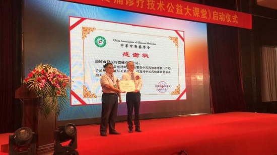 淄博前沿医疗器械有限公司向山西省五寨县捐赠价值90余万元的医疗设备,中华中医药学会颁发感谢状