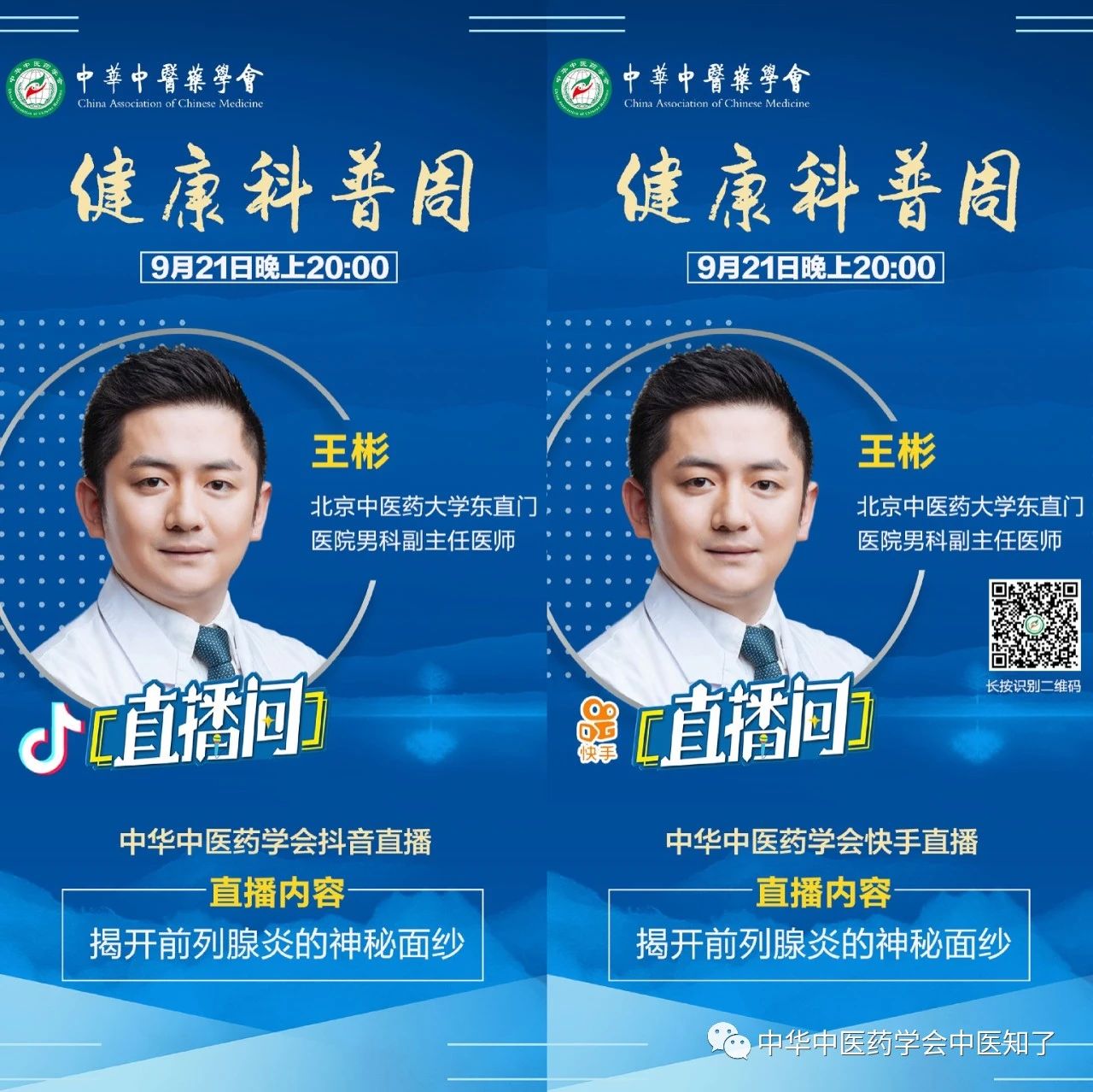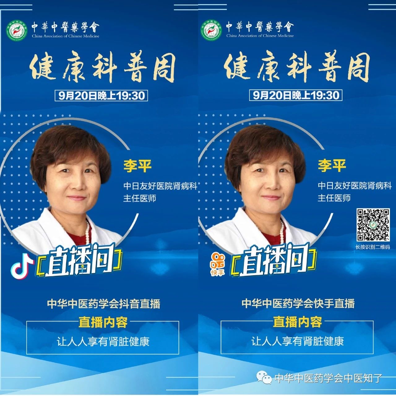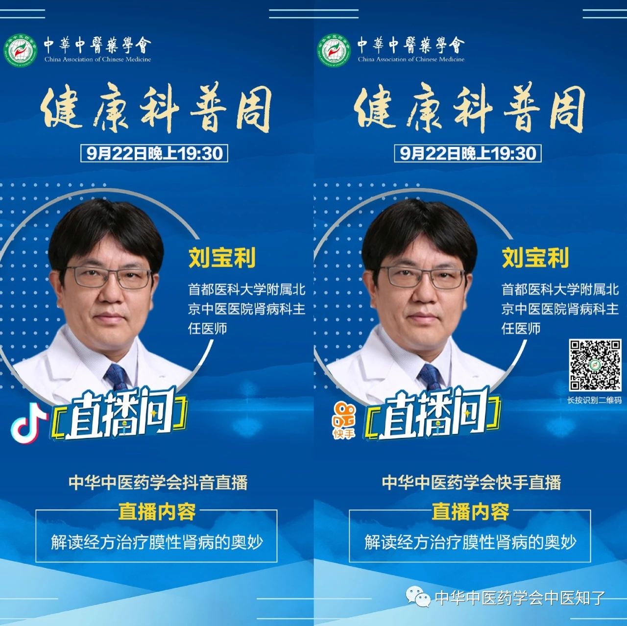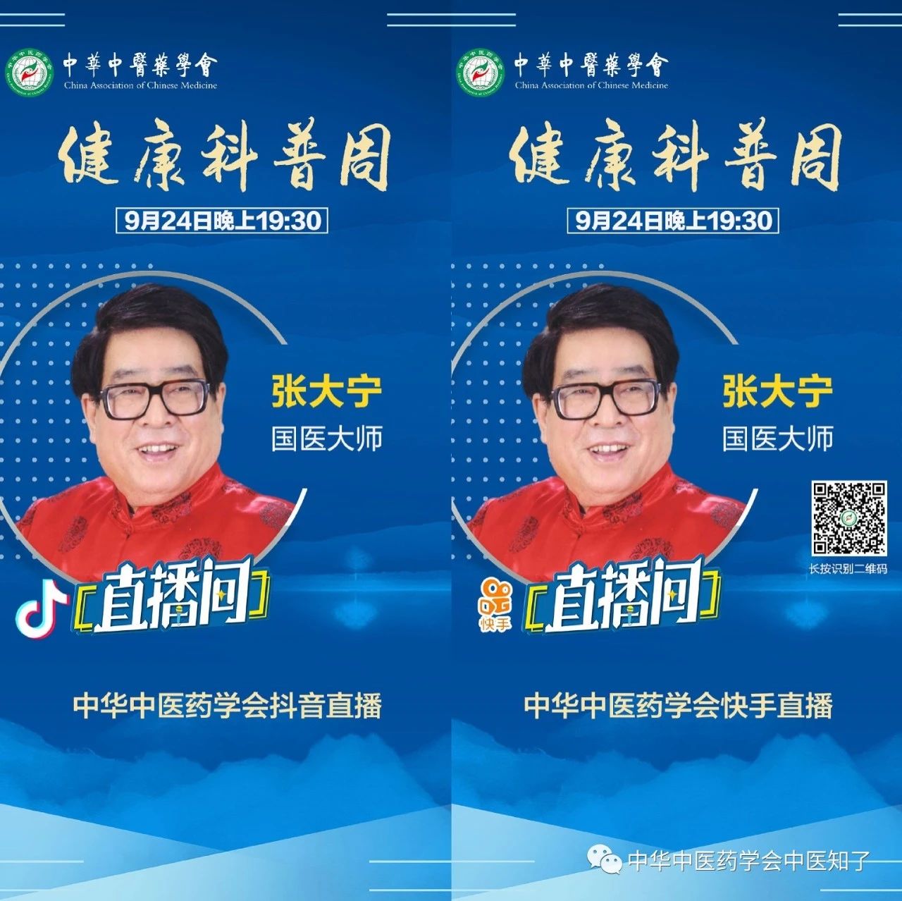 为弘扬科学精神,普及中医药科学知识,实现健康中国的伟大战略,满足人民美好生活的需要,中华中医药学会计划在9月19日科普日到来之际,联合中医药知名专家,在学会官方抖音和快手平台上开展“健康科普周”活动。欢迎大家关注和收看!