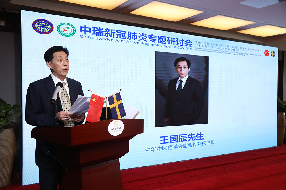 王国辰秘书长在致辞中表示,中医药全程参与,深度介入,为打赢疫情防控阻击战发挥了重要作用。新冠肺炎疫情暴发以来,中华中医药学会作为我国成立最早、影响力最大的中医药学术团体,主动谋划,迅速行动,积极动员中医药科技工作者及有关单位投身疫情防控工作,同时秉持“构建人类卫生健康共同体”的理念,向海外民众分享中医药防治新冠肺炎的好经验、好做法。本次会议邀请中瑞两国医药领域的权威专家,共同就中医药在国际抗疫中的推动作用进行交流研讨,希望能推动两国医学界进一步沟通与合作。