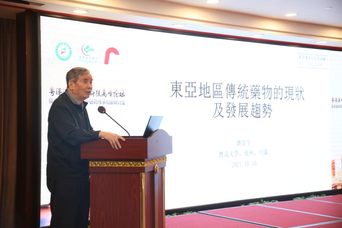 论坛上,中国工程院院士姚新生、刘良,中国科学院院士、国医大师陈可冀分别以《东亚地区传统药物的现状及发展趋势》《抗关节炎和抗癌1.2类创新中药研发》《中医有国籍,文明无疆界》为题进行报告,介绍了中医药发展现状以及前沿科研动态,分享临床经验以及学术感悟,呼吁粤港澳青年中医药科研人才遵循中医药发展规律,充分融合现代科学技术,促进中医药科研水平提高,让中医药更好地造福世界人民。
