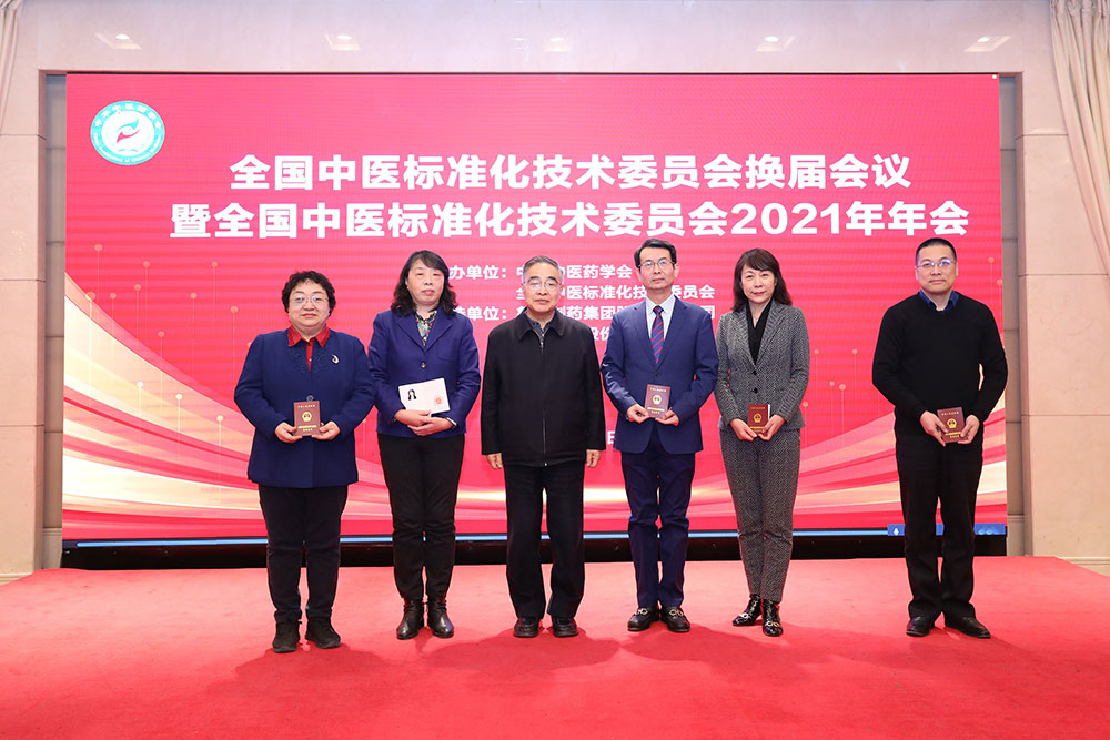 在国家中医药管理局大力支持下,国家标准化管理委员会批准全国中医标准化技术委员会换届工作,王晓燕处长代表国家标准化管理委员会宣读了换届公告,第二届全国中医标准化技术委员会SAC/TC478由68名委员组成,张伯礼任主任委员,王国辰、杨明会、唐旭东、朱立国、李灿东任副主任委员,孙永章任委员兼秘书长,高颖、谢雁鸣、姜泉、付强、李慧任委员兼副秘书长。秘书处由中华中医药学会承担。陈洪俊副司长为张伯礼主任委员、王国辰副主任委员、朱立国副主任委员颁发委员证书,张伯礼主任委员为秘书长、副秘书长、委员代表颁发委员证书。