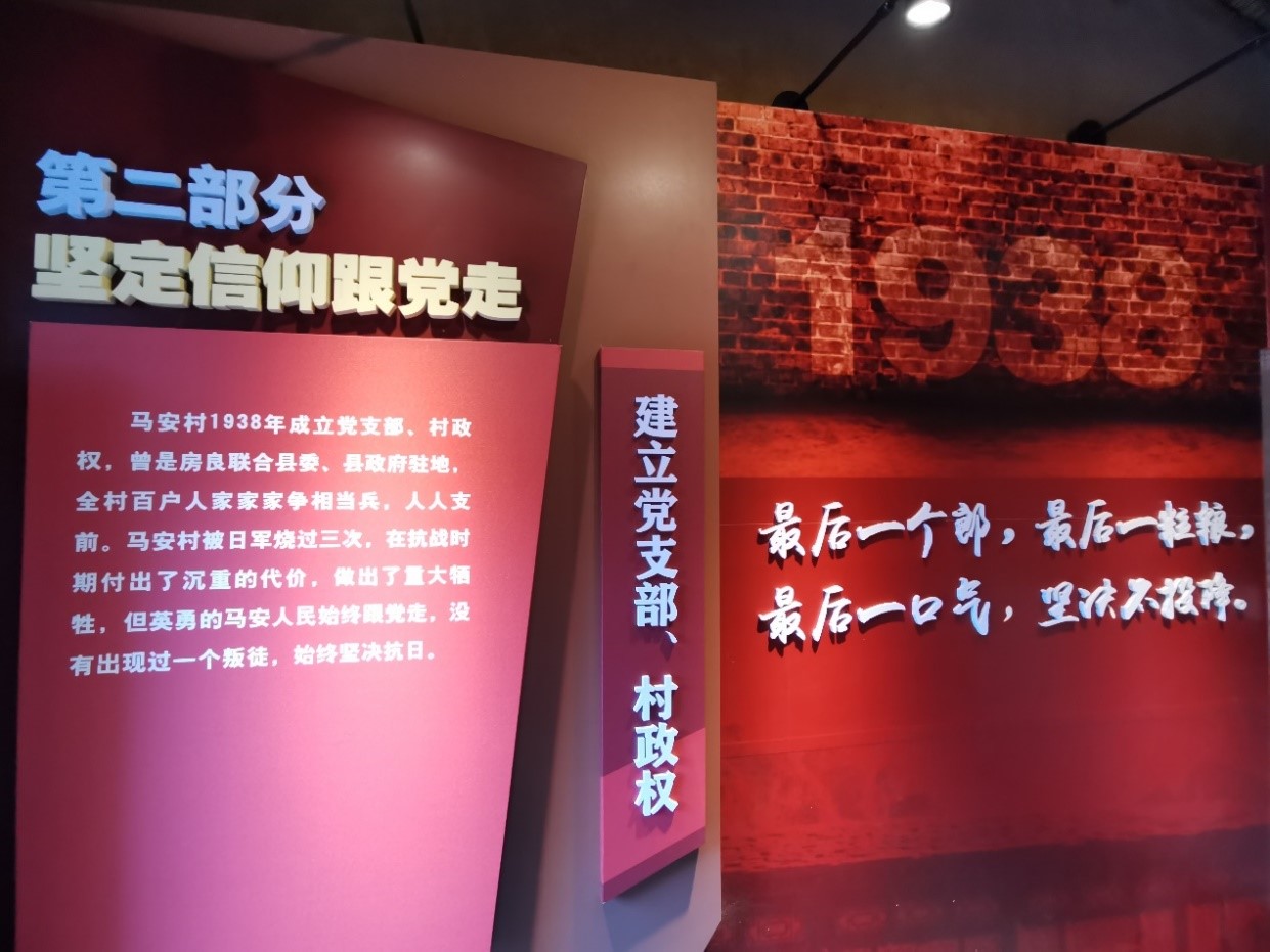 座谈结束后,各位中医专家医疗帮扶同时,不忘党员初心,赶到十渡镇下辖的抗日模范村–马安村抗日纪念馆及村史馆参观,进行爱国主义教育。在这里,专家们回顾了当年抗日战争的血雨腥风,了解了村民们与敌人殊死搏斗的历史,体会和缅怀“最后一个郎,最后一粒粮,最后一口气,坚决不投降”的大无畏保家卫国的抗战精神。本次参观是对共产党员精神层面的思想洗涤与提升。