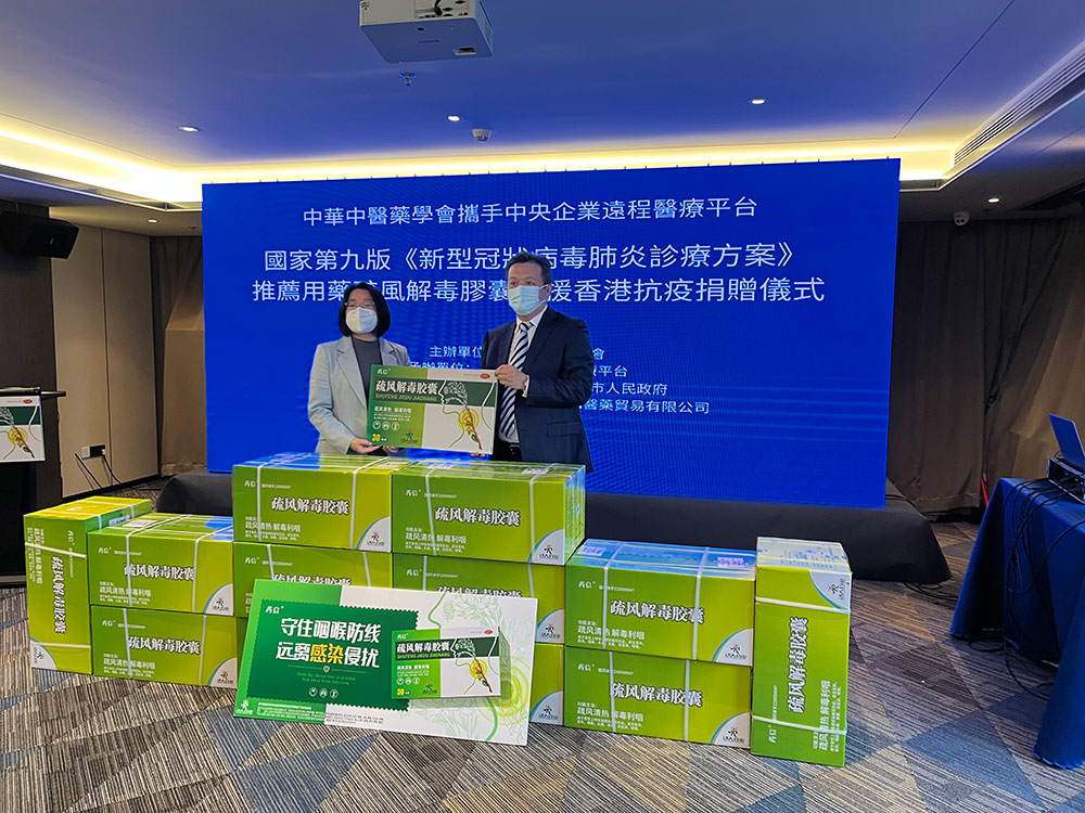 2022年3月28日,由中华中医药学会主办,中央企业远程医疗平台承办,安徽省中医药学会、亳州市人民政府协办的国家《新型冠状病毒肺炎诊疗方案》推荐用药疏风解毒胶囊驰援香港抗疫捐赠仪式通过线上在北京、香港、深圳、合肥、亳州五地共同举行。仪式上,中华中医药学会国际中医药产业基地——安徽济人药业有限公司向香港捐赠了6000盒疏风解毒胶囊。