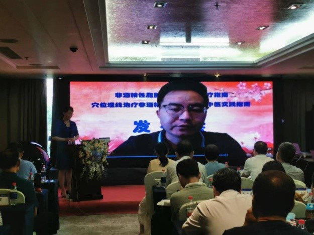 中华中医药学会标准化办公室负责人苏祥飞宣读了《非酒精性脂肪性肝炎中医诊疗指南》《穴位埋线治疗非酒精性脂肪性肝病中医实践指南》发布公告。