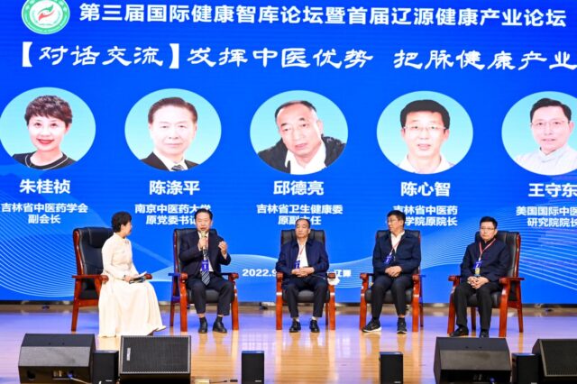在对话交流环节,南京中医药大学原党委书记陈涤平,吉林省卫生健康委原副主任、吉林省中医药管理局原局长邱德亮,吉林省中医药健康产业协会原会长、吉林省中医药科学院原党委书记陈心智,美国国际中医药研究院院长王守东围绕“发挥中医优势 把脉健康产业”的主题展开访谈交流,并为辽源地区中医药事业发展把脉开方。上海中医药国际服务贸易促进中心主任、中华中医药学会适宜技术国际推广合作共同体主席尚力,北京大学教授、中国标准化研究院特聘研究员刘传高,贵州贵龙火箭科技有限公司董事长、贵州贵安精准医学研究院股份公司首席科学家曹军,上海和窗医院管理咨询有限公司董事长刘牧樵,辽源市职业技术学院院长、辽源现代职业园区管理委员会办公室主任纪霖共同深入研讨如何整合中医资源、服务地方经济发展。五位专家纷纷对未来辽源地区经济转型升级表达期许,也从各自不同的角度给出对策建议。