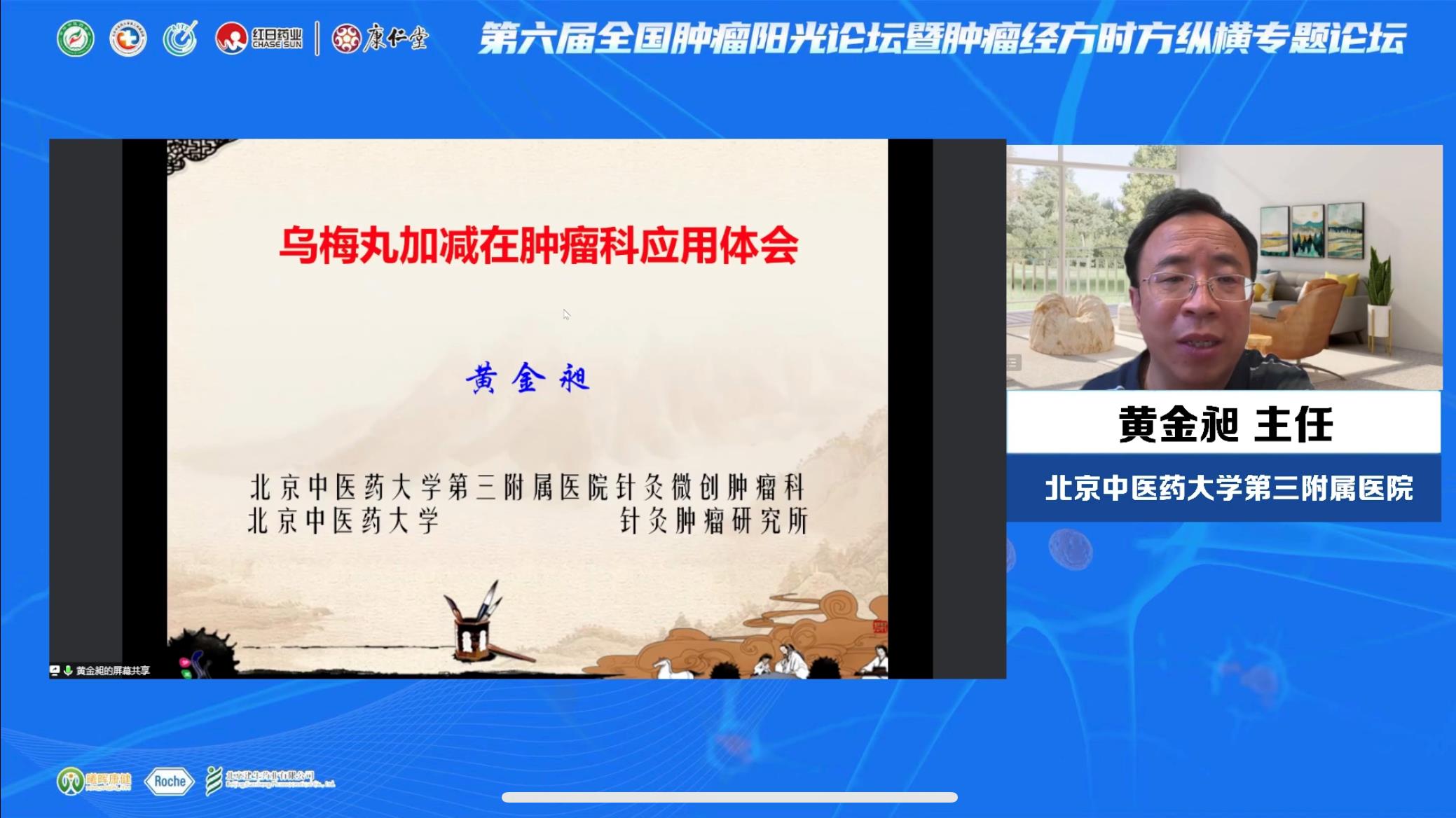 10月22日-23日,由中华中医药学会、北京中医药大学第三附属医院共同主办的“第六届全国肿瘤阳光论坛暨肿瘤经方时方纵横专题论坛”在线上成功举行。本次会议以“包容、集思广益、中西并重、继承创新”为宗旨,坚持“实用、前沿、热点、创新”为导向,以“肿瘤经方时方纵横”为主题,保持既往“重实用、强临床”的特点,邀请来自全国各省市的肿瘤专家近40人展开学术交流,吸引5000余人参加学习。