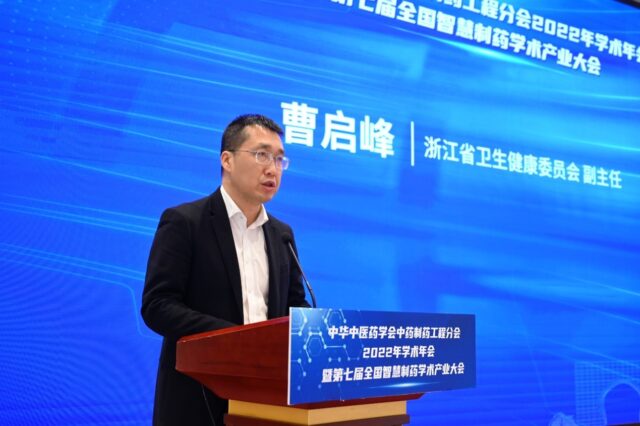 2022年11月14日-16日,以“数字科技赋能制药过程检测与建模,人工智能助力中药工业高质量发展”为主题的中华中医药学会中药制药工程分会2022年学术年会暨第七届全国智慧制药学术产业大会在浙江省杭州市未来科技城以线上线下相结合的形式召开。大会由中华中医药学会主办,中华中医药学会中药制药工程分会等单位承办。中国工程院院士、天津中医药大学名誉校长、国医大师张伯礼教授,浙江省卫生健康委员会副主任、省中医药管理局副局长曹启峰,江西中医药大学原副校长杨明教授现场出席大会,中华中医药学会副秘书长陈俊峰在线出席开幕式,中华中医药学会中药制药工程分会主委程翼宇教授主持开幕式。逾4万人次通过网络直播在线参加会议。