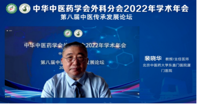 2022年11月18日-20日,由中华中医药学会主办,中华中医药学会外科分会、世界中医药学会联合会疽证专委会、北京中医药大学东直门医院厦门医院承办,北京中医药大学东方医院、江苏省中医院、北京中医药大学东方医院秦皇岛医院、《中国临床医生杂志》杂志社协办的“中华中医药学会外科分会2022年学术年会”以线上线下结合形式召开,累计与会3万多人次。中华中医药学会副会长兼秘书长王国辰,北京中医药大学东方医院党委书记、院长刘金民,中华中医药学会外科分会名誉主任委员李曰庆、主任委员裴晓华出席开幕式并致辞。开幕式由外科分会秘书长曹建春主持。