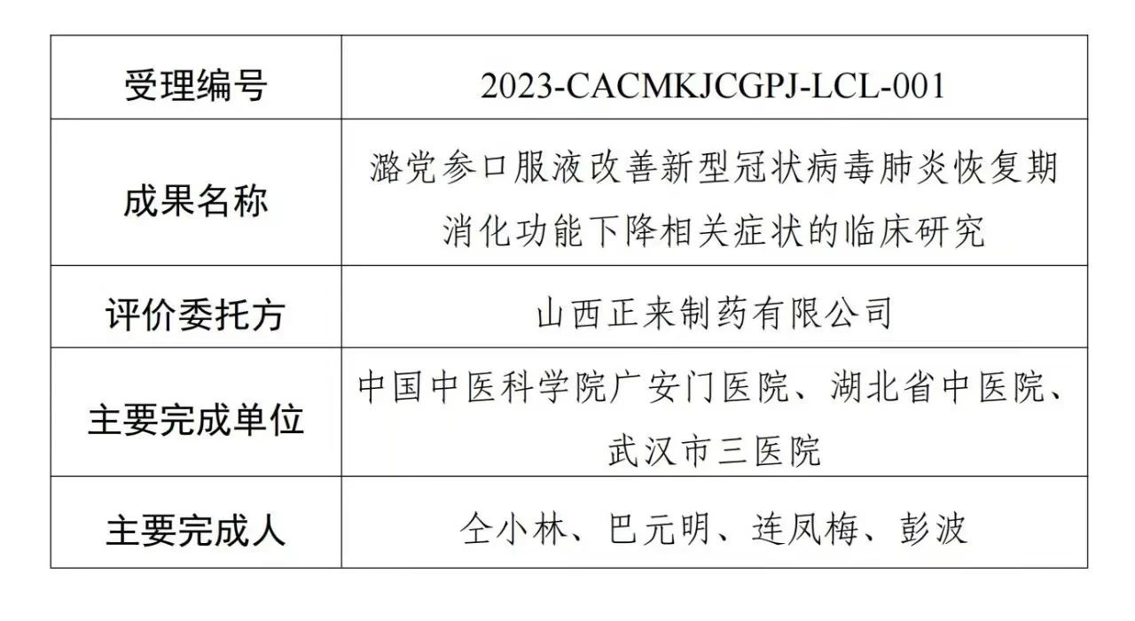 按照评价工作流程,前期经接受委托、形式审查、立项公告环节,2023年4月15日,学会以会议形式开展了“潞党参口服液改善新型冠状病毒肺炎恢复期消化功能下降相关症状的临床研究”评价工作。