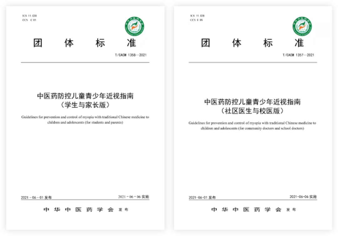 2019年起,中华中医药学会相继发布了中医药近视防控指南(社区医生与校医版、学生与家长版)(T/CACM 1357-2021、T/CACM 1358-2021)、中医适宜技术指南(T/CACM 1397-2022)、病理性近视眼底病变黄斑出血中医诊疗指南(T/CACM 1398—2022)等在内的系列指南,涵盖学生与家长、社区医生与校医、临床医生等多层次人群的科普及指导,涉及近视各个阶段的防、控、治,有利于实现学生、家长自我干预和校医、临床医生等中医药防治近视能力提升。系列指南曾在第九届中国国际服务贸易交易会上亮相,受到关注。