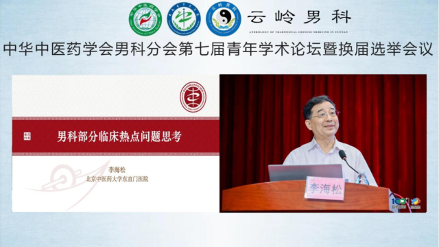 李海松作题为《男科部分临床热点问题思考》的报告,从男科常见疾病证候乱象引出热点问题,并对男科常见疾病如慢性前列腺炎、勃起功能障碍等进行证候思考,指出理论创新应以疗效突破为导向,并呼吁应对男科共病真实世界引起重视,重点加强针对优势病种的机制研究。