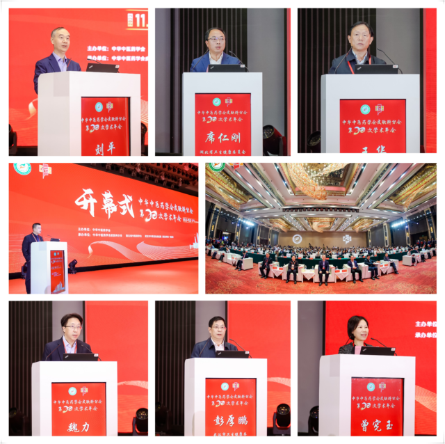 中华中医药学会原副秘书长刘平,湖北省卫生健康委员会中医药医政管理处处长席仁刚,湖北省中医药学会会长王华,武汉市卫生健康委员会党委副书记彭厚鹏,武汉市中西医结合医院党委书记魏力,武汉市中西医结合医院院长王岚,中华中医药学会皮肤科分会名誉主任委员段逸群、杨志波等出席开幕式,充分肯定了皮肤科分会20年来的奋斗成绩,希望分会把握机遇,加强思想引领,加快推进中医皮肤科学科建设和学术发展,打造一流学术品牌。
