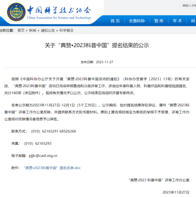 “典赞·科普中国”是由中国科协主办的一项评选年度科普典型的活动,创始于2015年,到今年已经连续举办八届,通过盘点年度科普的人物、作品、事件和谣言,在促进全民科学素质提升等方面发挥了积极作用,已成为科普领域影响力最大的品牌活动之一。