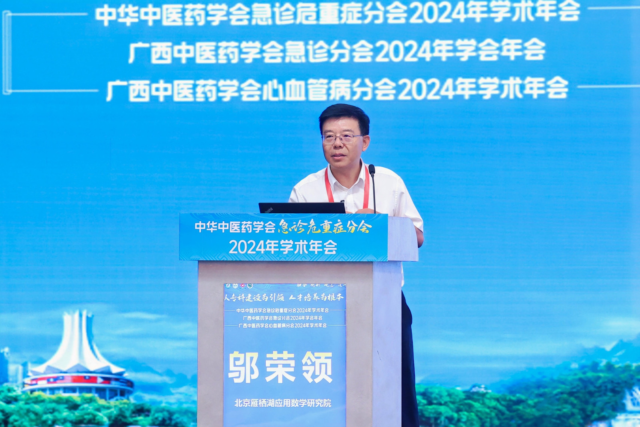 北京雁栖湖应用数学研究院副院长邬荣领教授以《中医药的统计物理学:从现象观察走向机理解析》为题作主旨报告,他将繁杂的数学公式以通熟易懂的方式进行讲解,以一个个具体的实例向与会者展示事件发生背后的数学规律,将数学公式和模型与中医药治疗疾病相联系,强调了从现象观察走向机理探析的重要性,指出未来中医药现代化、数字化、智能化研究的趋势与重要性。