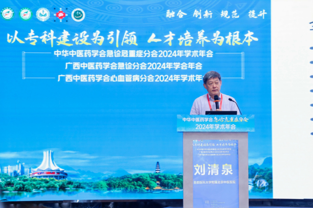刘清泉作题为《中医急诊危重症学科建设的认识与思考-中医医院急诊科与ICU建设指南解读》的主旨报告,他以目前中医医院急诊科与ICU的发展现状为引题,指出完善全国中医医院急诊ICU学科建设指南的必要性和重要性,以临床研究为例强调了人才培养的迫切性,并给出了具体的方法,呼吁委员们集思广益,参与学科建设中,推动中医急诊重症事业更上一个新台阶。