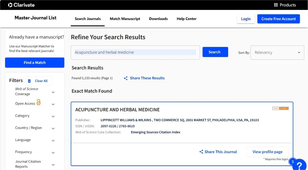 近日,《针灸和草药(英文)》(AHM)通过科睿唯安ESCI 数据库评估,已被正式收录,将于2025年获得首个影响因子。ESCI数据库将回溯并收录AHM自2021年创刊以来所有发表论文,全球读者可通过Web of Science平台免费查询和阅读全文。