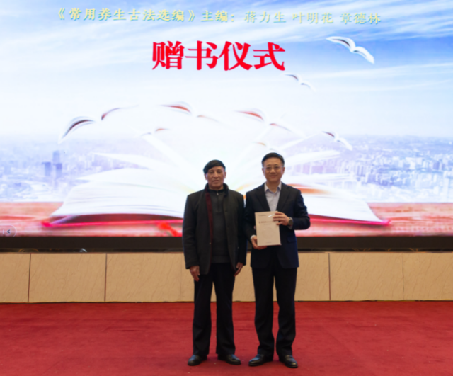会议期间,养生分会学术顾问蒋力生教授向潍坊市中医院赠送《常用养生古法选编》。